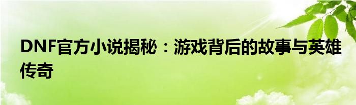 DNF官方小说揭秘:游戏背后的故事与英雄传奇