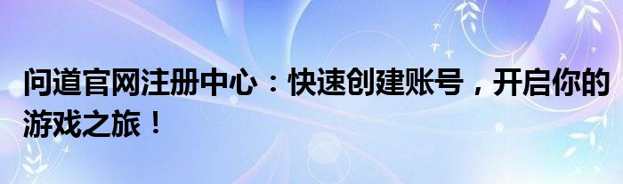 问道官网注册中心:快速创建账号,开启你的游戏之旅!