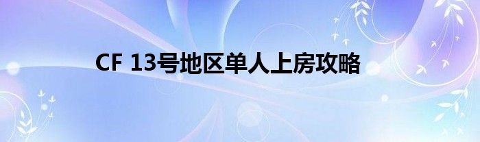 CF 13号地区单人上房攻略