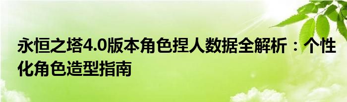 通过本文的指南,玩家可以充分了解永恒之塔4.0版本的捏人数据系统,轻松打造个性化的游戏角色。希望本文能帮助玩家在永恒之塔的世界中,找到属于自己的独特角色形象。