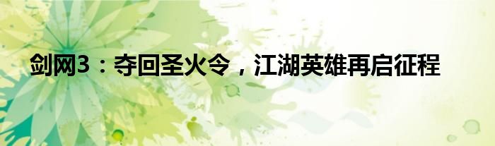 《剑网3》的世界里,一场关于夺回圣火令的冒险已经拉开帷幕。这是一场融合了智慧与勇气的较量,一场彰显了英雄气概的冒险。让我们共同期待这场荣耀的征途,见证江湖英雄的辉煌归来。