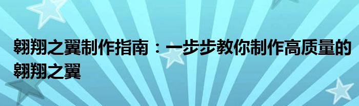 翱翔之翼制作指南:一步步教你制作高质量的翱翔之翼