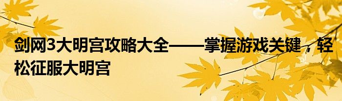 本攻略旨在为玩家提供剑网3大明宫的详细攻略,帮助玩家了解游戏背景、任务目标、关卡难度及应对策略,从而轻松征服大明宫。