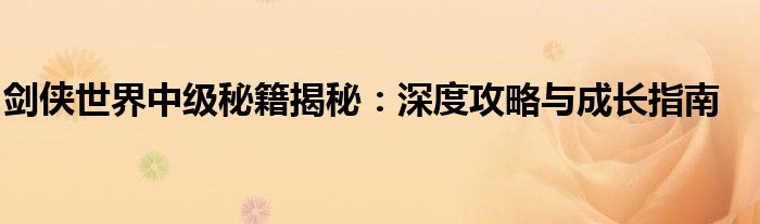 剑侠世界中级秘籍揭秘:深度攻略与成长指南