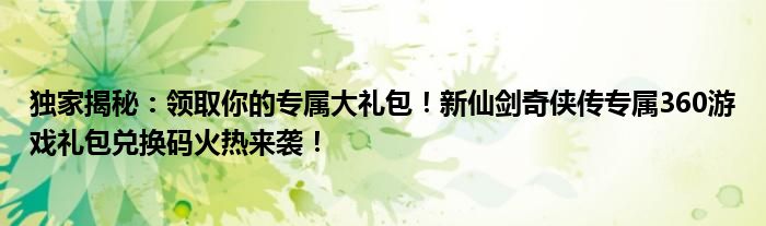 独家揭秘:领取你的专属大礼包!新仙剑奇侠传专属360游戏礼包兑换码火热来袭!