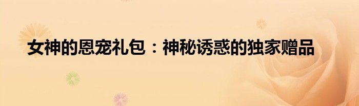 女神的恩宠礼包:神秘诱惑的独家赠品