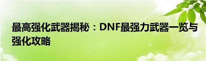 本文将为你详细介绍在DNF(地下城与勇士)游戏中,最高强化的武器种类及其特点。我们将深入探讨这些武器的属性、强化方式以及强化技巧,助你成为游戏中的强者。