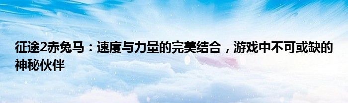 在充满奇幻和冒险的游戏世界中,《征途2》的赤兔马无疑是速度与力量的完美结合,成为游戏中不可或缺的神秘伙伴。它以其独特的能力和吸引力,让无数玩家为之倾倒。