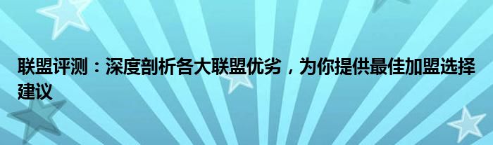 联盟评测:深度剖析各大联盟优劣,为你提供最佳加盟选择建议