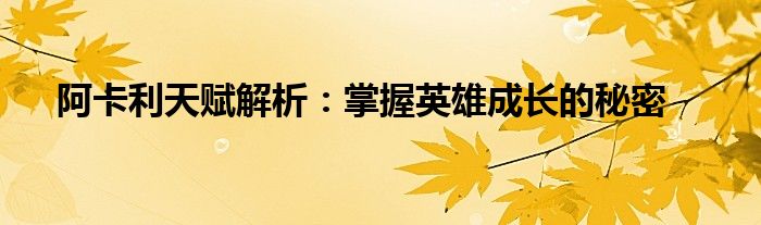 本文将围绕“阿卡利天赋”展开深入解析,探讨如何正确选择和使用英雄的天赋技能,为玩家们在游戏中更好地成长和战斗提供有力支持。本文将涵盖阿卡利天赋的核心理念、使用技巧及实战应用,帮助玩家们掌握英雄成长的秘密。