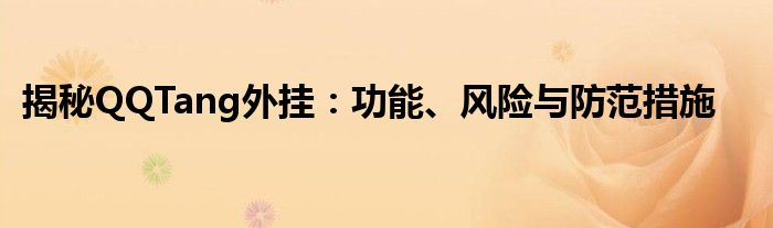 随着网络游戏的普及,外挂现象屡见不鲜。QQTang作为一款受欢迎的游戏平台,同样面临着外挂的威胁。本文将介绍QQTang外挂的相关知识,包括功能特点、存在的风险以及如何防范外挂的使用。