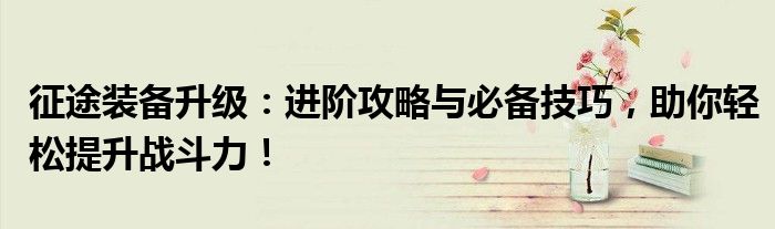 征途装备升级:进阶攻略与必备技巧,助你轻松提升战斗力!