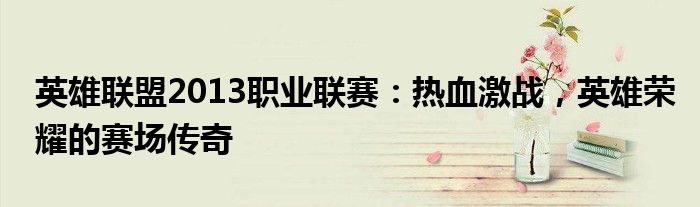 英雄联盟2013职业联赛:热血激战,英雄荣耀的赛场传奇