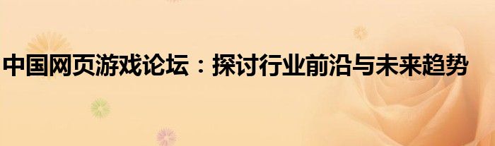 中国网页游戏论坛:探讨行业前沿与未来趋势