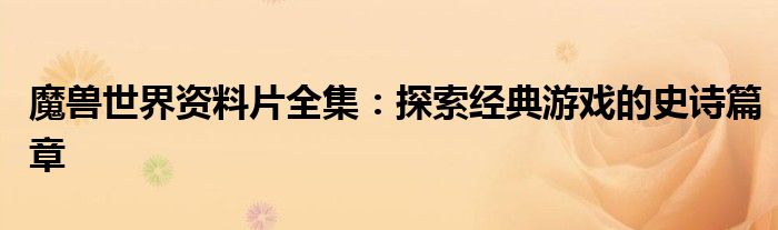 魔兽世界资料片全集:探索经典游戏的史诗篇章