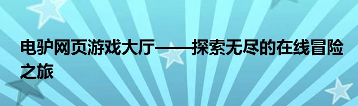电驴网页游戏大厅——探索无尽的在线冒险之旅