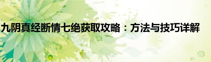 九阴真经断情七绝获取攻略:方法与技巧详解