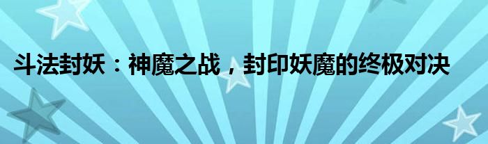 斗法封妖:神魔之战,封印妖魔的终极对决