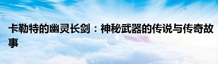 卡勒特的幽灵长剑:神秘武器的传说与传奇故事
