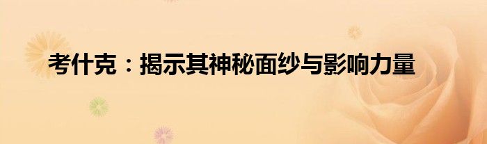 本文将探讨考什克这一主题。文章旨在介绍考什克的起源、发展以及其产生的影响。我们将深入了解考什克背后的历史背景,以及其如何逐渐融入现代社会并产生影响。同时,我们将探讨考什克在现代社会中的意义和价值,以及它如何改变人们的生活和工作方式。
