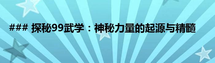 ### 探秘99武学:神秘力量的起源与精髓