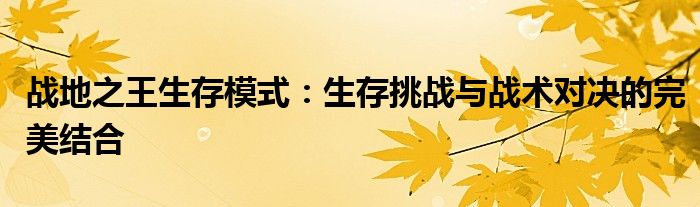 战地之王生存模式:生存挑战与战术对决的完美结合