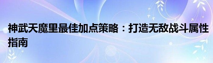 神武天魔里最佳加点策略:打造无敌战斗属性指南