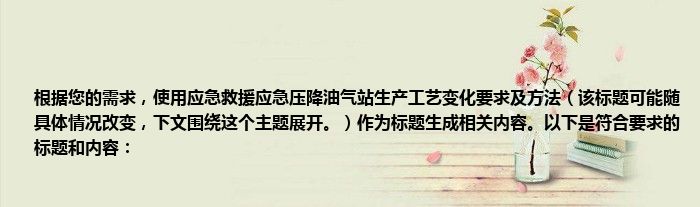 根据您的需求,使用应急救援应急压降油气站生产工艺变化要求及方法(该标题可能随具体情况改变,下文围绕这个主题展开。)作为标题生成相关内容。以下是符合要求的标题和内容: