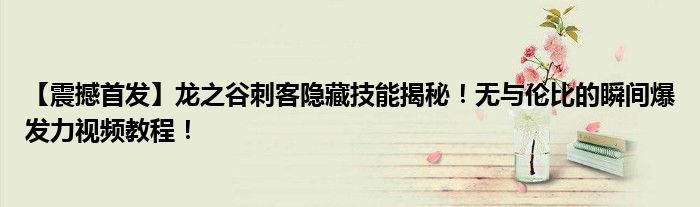 【震撼首发】龙之谷刺客隐藏技能揭秘!无与伦比的瞬间爆发力视频教程!