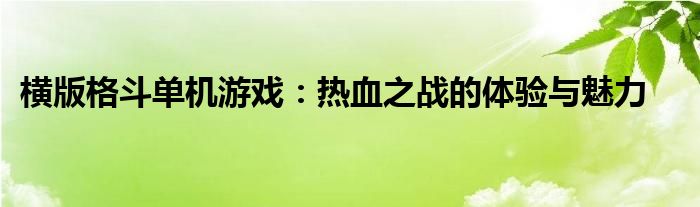 随着游戏行业的蓬勃发展,各种类型的游戏层出不穷,其中横版格斗单机游戏因其独特的游戏机制和魅力,吸引了大量玩家的关注。今天,我们就来详细探讨一下这类游戏的体验与魅力。