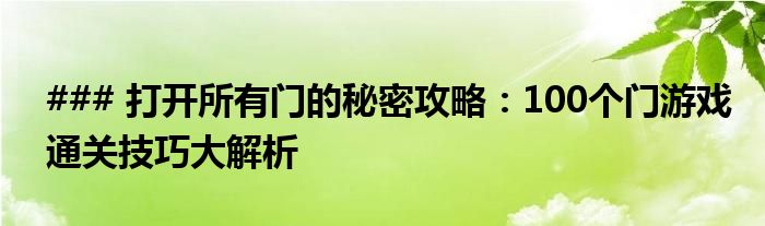 ### 打开所有门的秘密攻略:100个门游戏通关技巧大解析
