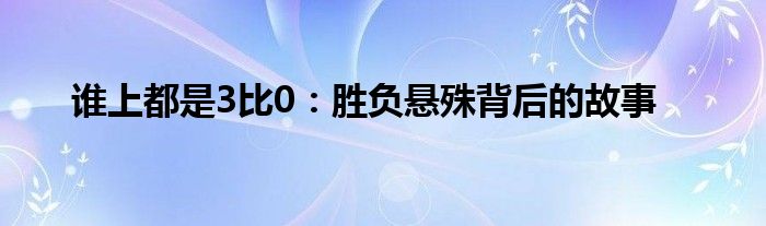 在竞技体育的世界里,比分往往是最直观、最客观的胜负标准。然而,当一场比赛的胜负悬殊到一定程度,比如“谁上都是3比0”,我们不禁要探究这背后更深层次的原因。