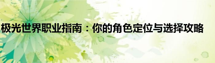 本文主要介绍了在游戏“极光世界”中的职业选择攻略。针对游戏中各种职业的特点和定位,本文为广大玩家提供了详尽的解析和建议,帮助玩家根据自己的兴趣和特长选择最合适的职业,提升游戏体验。