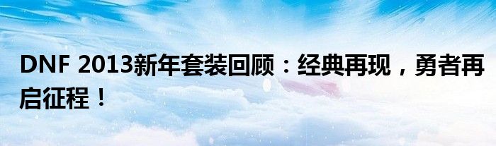 DNF 2013新年套装回顾:经典再现,勇者再启征程!