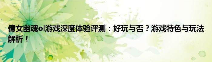 本文将深入探讨热门网络游戏《倩女幽魂ol》的游戏特色、玩法体验、玩家评价等方面,以解答读者关于这款游戏是否好玩的疑问。