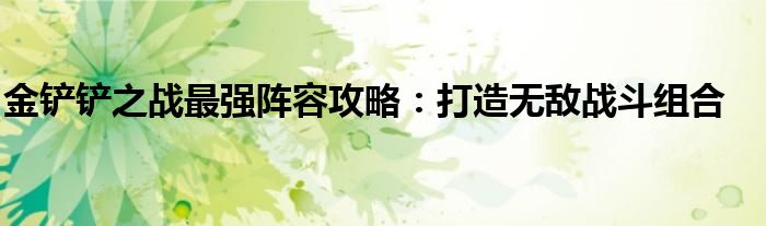 本文将为您详细介绍在金铲铲之战游戏中如何构建强势阵容,通过合理搭配英雄和装备,打造无敌战斗组合,助您在游戏中取得胜利。