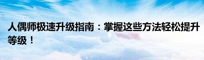 人偶师极速升级指南:掌握这些方法轻松提升等级!