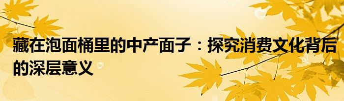 藏在泡面桶里的中产面子:探究消费文化背后的深层意义