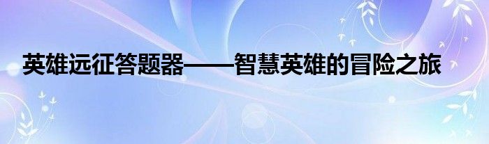 以上是关于“英雄远征答题器”的标题和内容建议,希望能满足您的需求。如有其他需求或问题,请随时告诉我。