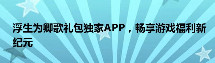 《浮生为卿歌礼包独家APP》— 专为游戏爱好者量身定制的移动应用,旨在为广大玩家提供丰富的游戏礼包和独家福利。无论您是新手玩家还是资深游戏迷,本APP都将带您进入一个全新的游戏福利纪元。