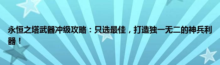 本篇攻略针对热门游戏《永恒之塔》中的武器冲级进行详尽解读,以“武器冲级只做”为关键词,为玩家展示如何精准选择、强化武器,进而打造出独一无二的神兵利器。本攻略将从以下几个方面展开: