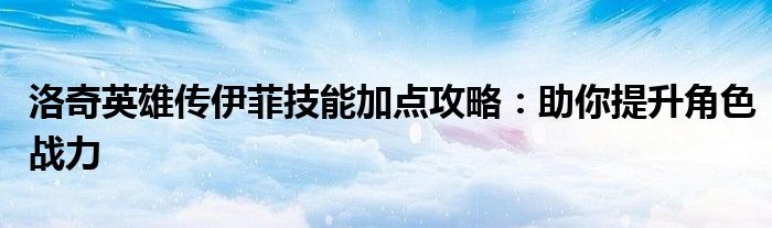 本文将详细介绍洛奇英雄传中伊菲角色的技能加点方法,帮助玩家更好地提升角色战力。通过本文的指导,你将了解到如何合理分配技能点,以最大化伊菲的战斗能力。