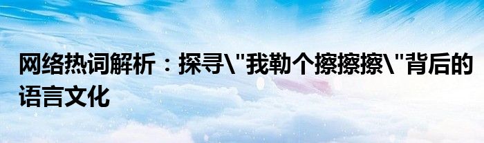 网络热词解析:探寻"我勒个擦擦擦"背后的语言文化