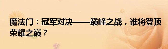 魔法门:冠军对决——巅峰之战,谁将登顶荣耀之巅?