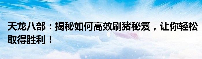 天龙八部:揭秘如何高效刷猪秘笈,让你轻松取得胜利!