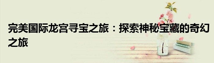 完美国际龙宫寻宝之旅:探索神秘宝藏的奇幻之旅
