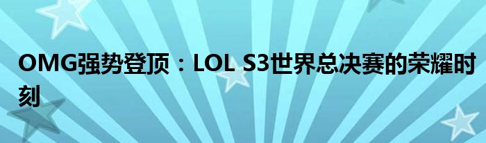 OMG强势登顶:LOL S3世界总决赛的荣耀时刻