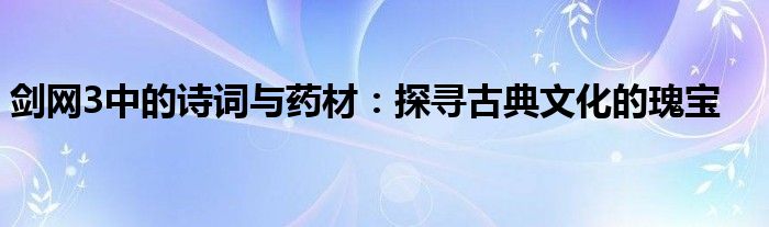 剑网3中的诗词与药材:探寻古典文化的瑰宝