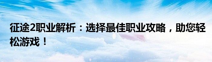征途2职业解析:选择最佳职业攻略,助您轻松游戏!