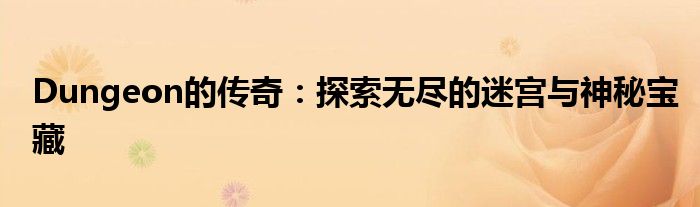 Dungeon的传奇:探索无尽的迷宫与神秘宝藏